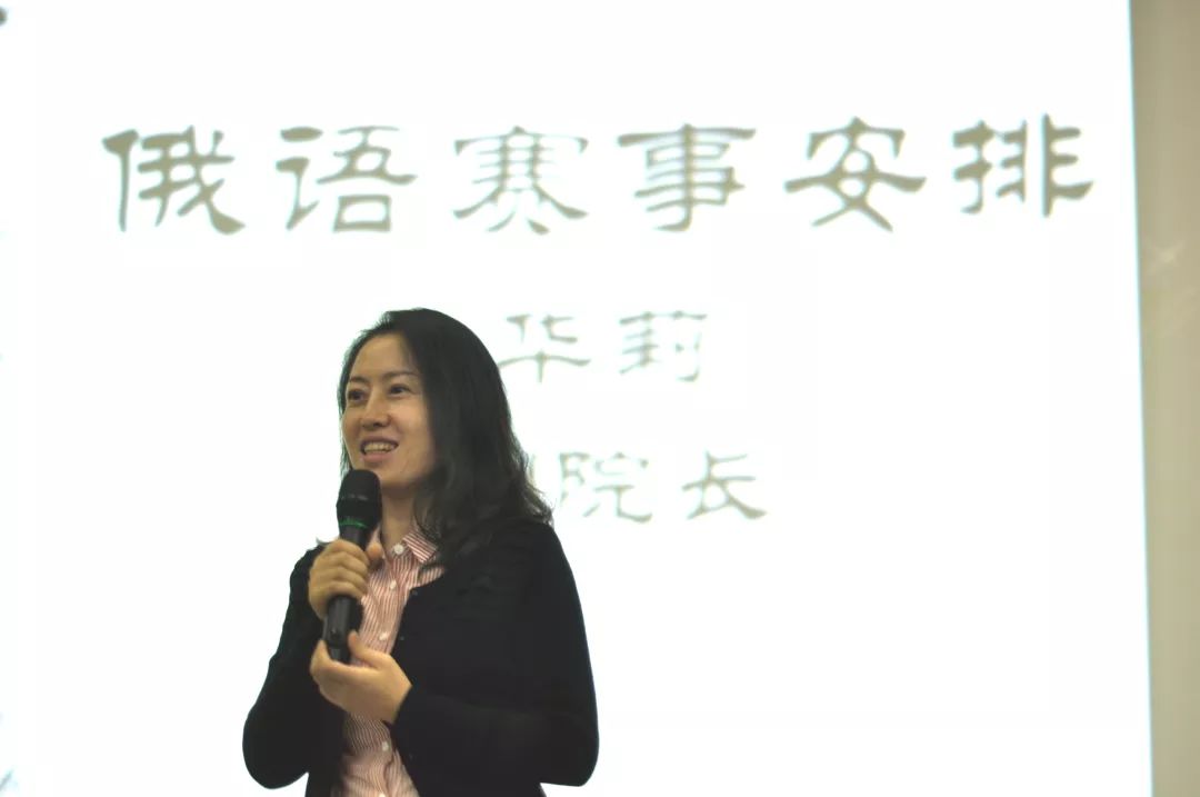 夏甘霖介绍了英语赛事安排,特别提到今年“外研社·国才杯”英语演讲比赛增设网络赛区。学校除了选送此次演讲比赛地面赛得分最高的选手外,其他参赛选手与评委老师也可以进行双向选择,在专业老师的指导下进行网络赛区的网络视频录制。华莉介绍俄语赛事安排,在新时代中俄全面战略协作伙伴关系的背景下,全国俄语大赛为俄语专业的同学们展示所掌握的俄语语言技能以及对俄罗斯文化的了解提供了良好的平台。