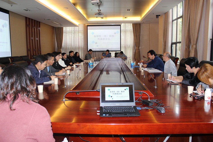为全面落实“不忘初心、牢记使命”主题教育,扎实推进审核评估整改工作,认真听取教师对教学管理方面的意见和建议,进一步提升我校本科教育教学质量,10月15日下午,学校在综合研究中心101会议室召开各学院(部)教师代表座谈会。教务处处长袁胜育,教学质量督查与评估办公室主任李起、副主任奚小玮,受邀的20多名教师代表参加会议。会议由袁胜育主持。
