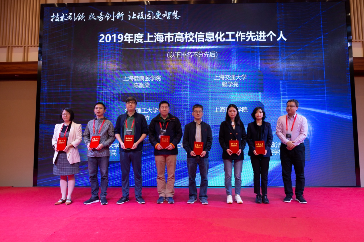 10月19日,在上海市高等教育学会校园网络专业委员会、信息管理专业委员会2019年学术年会上,由信息化工作办公室主任杨田宏申报的“移动智慧校园”项目在上海高校信息化建设众多建设案例评选中脱颖而出,荣获“2019年度上海市高校信息化建设与应用优秀案例”。同时,信息化工作办公室副主任倪宇斌被评为“2019年度上海市高校信息化工作先进个人”。