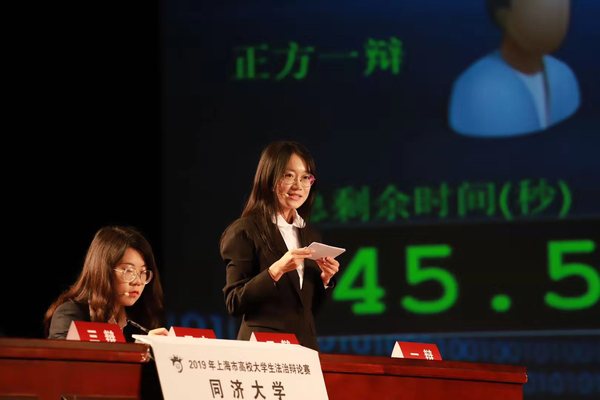 揭幕战由同济大学(正方)对阵上海师范大学(反方),就“人工智能的规范发展主要靠法律还是伦理”问题展开激烈辩论。最终,上海师范大学获胜,最佳辩手由反方二辩王欣雨摘得。
