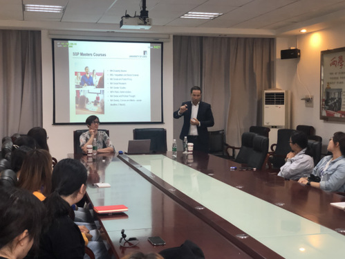 Adam Tyson教授详细介绍了利兹大学的概况以及相关的合作项目,对利兹大学的地理位置、周边环境、历史、开设的硕士专业等学校概况做了简单介绍,并对与政府管理学院已合作的“3+1”政治学及社会学项目做了讲解。