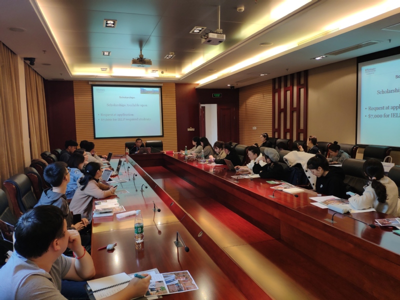 10月28日下午,美国圣路易斯华盛顿大学罗伟教授访问我校并进行研究生项目宣讲。罗伟全面介绍了美国圣路易斯华盛顿大学法学硕士项目概况,并介绍了该校现代教学设施、学术交流环境、住宿条件等内容。此外,罗伟还分享了我校优秀学生在美国的求学就业情况,并介绍了学业学习同美国律师职业资格考试衔接的相关内容。在场同学就项目申请流程、录取事项、就业等问题积极交流。