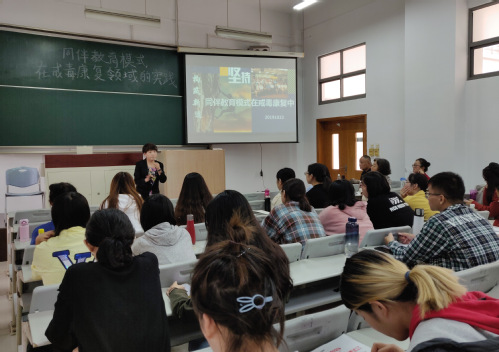 讲座中,叶雄认为一个人要具备三种积极的人生态度:学会感恩、会爱自己、有仁慈之心。戒毒过程中,叶雄提到的“社会工作者相信服务对象有改变的欲望,有改变的能力和资源”的价值观,使她相信自己可以战胜毒品的诱惑。随后,叶雄介绍了同伴教育的定义、范围、特点、类型、形式、优势以及实施步骤等,让同学们了解同里,同学们纷纷与叶雄老师交流互动。