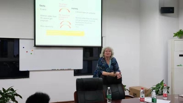 Pauline Westerman在驻访期间为我校法学硕士和法律硕士开展了四场讲座,内容涉及“法律的功能”“法律的特征”“界定法律的不同视角”以及“刑法的哲学基础”等。Pauline Westerman在讲座过程中,注重引导学生思考问题,注重与学生的互动,方法灵活。通过案例、重大历史事件等生动的题材,由浅入深地阐释法哲学领域的基本问题,受到学生的热烈欢迎。每场讲座结束后,都有学生向教授请教问题,教授均予以耐心细致地解答。另外,也要十分感谢在讲座过程中提供支持的王卫明老师和杜雪晶老师。(李泽 撰稿)