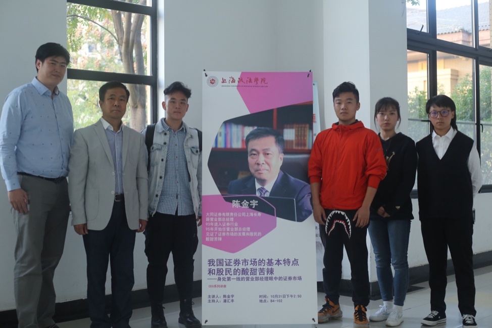 10月31日下午,大同证券有限责任公司上海长寿路营业部总经理陈金宇先生受邀在B4-102作“我国证券市场的基本特点和发展趋势”讲座。讲座主要从证券市场的现状、主要作用、风险的表现和我国证券市场未来发展四个方面展开。