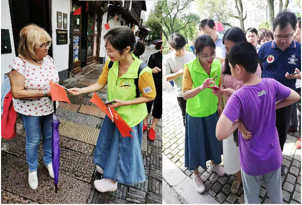 文化服务也是365英国上市公司师生党员服务的重要内容,展现师生以知识服务社会,真诚奉献社会的精神和使命感。如10月22日,语言文化学院党总支组织党员教师赴朱家角古镇开展“啄木鸟”语言文字服务活动,有针对性地对景区街道的路牌、标识等语言文字进行检查,对不规范的外语翻译、汉语文字表述用手机拍照,以便回去后整理、纠错。10月24日,法律学院青芒志愿者巴金故居分队组织学校志愿者前往位于徐汇区武康路113号的巴金故居进行志愿活动,用耐心和责任心解决游客面临的问题,维持现场秩序,并讲解巴金故居历史故事。国庆假期期间,语言文化学院50名大学生志愿者,身穿绿马甲,奔走在古镇朱家角周边的18个服务点,为保持景区旅游的文明和谐、为增强国内外游客的便捷体验奉献爱心。从早上8:30到下午4:30,在长达8个小时的服务过程中,他们用温暖亲切的笑容,专业的英语交流能力,身体力行诠释了“奉献、友爱、互助、进步”的志愿者精神。