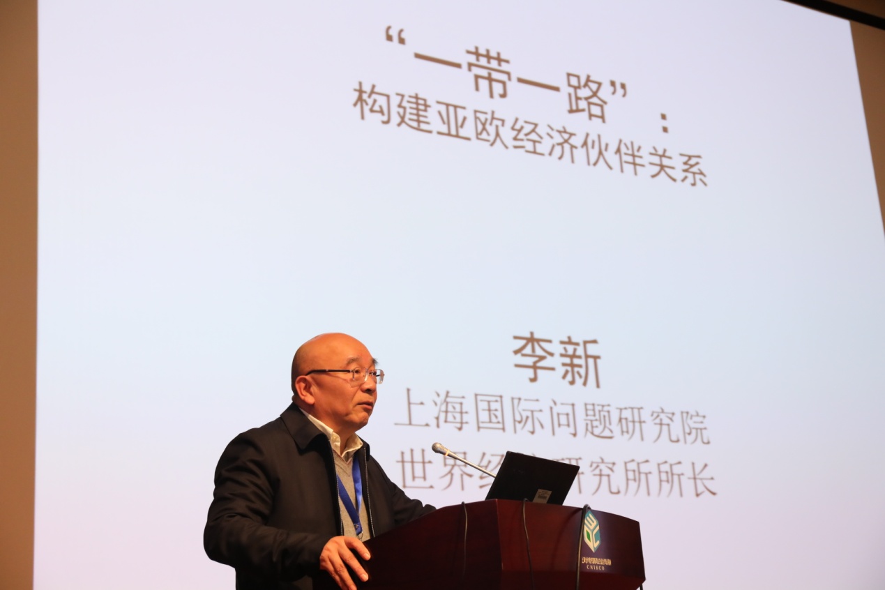上海国际问题研究院世界经济研究所所长李新作题为《“一带一路”构建亚欧经济伙伴关系》的报告,报告阐述了我国与俄罗斯等国家构建欧亚经济伙伴关系来龙去脉,并从硬件和软件基础设施两方面将东盟、RCEP及上海合作组织等串联在一起,打造欧亚经济共同体,实现网络连接。