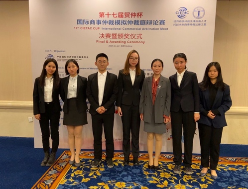 通过层层选拔,国际法学院17级黄滢芝、万慧纤、吴为思,法律学院17级刘瀚聪作为此次比赛的Oralist,国际法学院17级蔡宜霖、孙泠、张歆晨,经济法学院17级徐思颖作为比赛的Legal researcher,国际法学院蔡鑫博士担任指导教师。