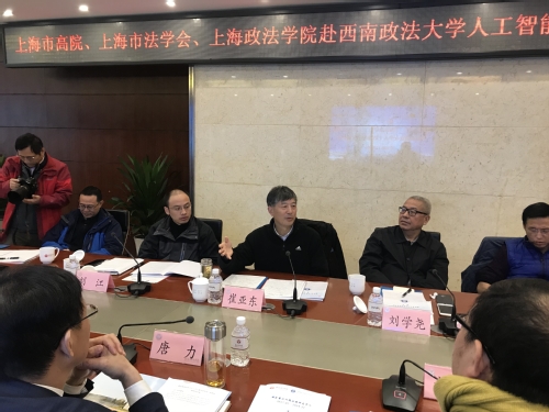 此次考察团主要由我校人工智能法学院组织,院长杨华教授介绍了学院的现状、困难和发展方向,以及前来考察调研的目的和任务。人工智能法学院专家委员会主任刘学尧,学院教师代表、理事会理事、浙江清华长三角研究院法治与社会治理研究中心主任白宁,专家委员会委员科大讯飞副总裁刘江,清华长三角研究院法治与社会治理研究中心研究员赵春学,上海高院信息处副处长吴海崟,凤凰网科技频道主管张建,重庆尚优科技有限公司总裁王利,上海电力公司总经理冯本国以及上海高院、上海市法学会、上海司法智库学会的有关同志一同前往考察调研。