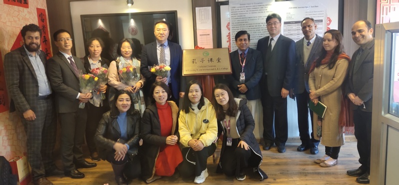 12月15日,代表团一行在尼泊尔汉语教师协会会长古玛尔博士的陪同下会见了尼泊尔汉语教师协会第一任会长苏西拉女士和秘书长夏木先生。苏西拉和夏木对代表团一行到访尼泊尔表示热烈欢迎,并详细介绍了尼泊尔汉语教师协会的工作情况。代表团还与尼泊尔开放大学Khagendra Prasai教授进行了会谈。