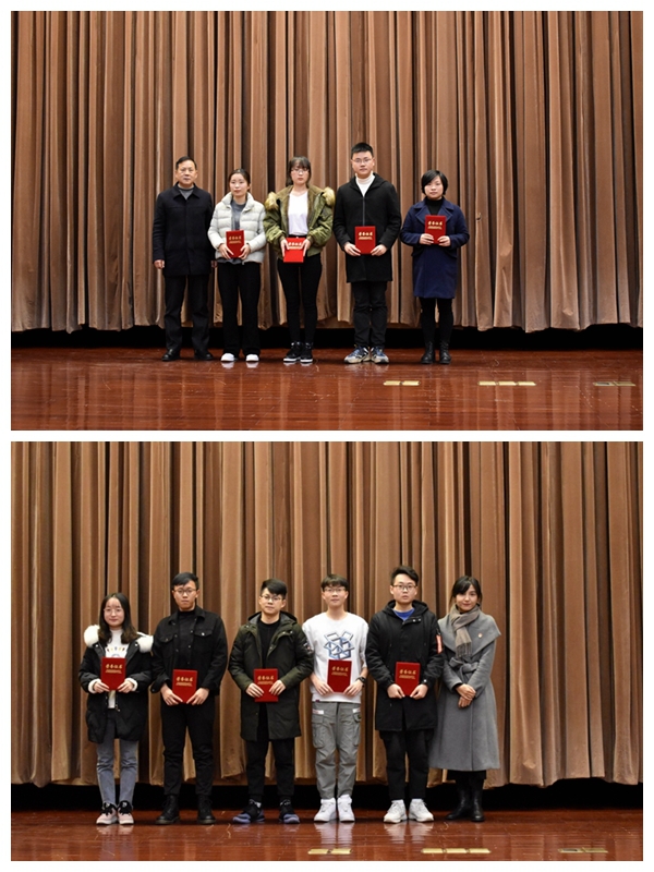 在第十六届挑战杯上海市大学生课外学术科技作品竞赛的表彰仪式上,文立月为特等奖获得者颁奖,辅导员买雨佳为一等奖、三等奖获得者颁奖。