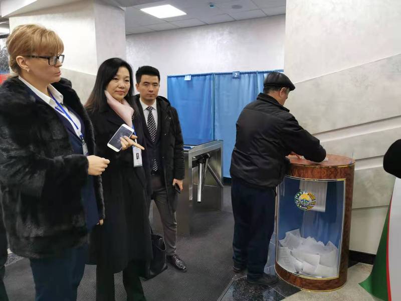 12月22日大选当日,刘晓红先后观摩了塔什干的四个投票站,对相关投票设施以及选民选票分发、填写、投递等过程进行了监督,履行国际观察员职责。在第462号投票站,刘晓红接受了乌国家电视台记者采访,对选举工作进行了点评。期间,刘晓红顺访了段和段律师事务所,事务所驻乌兹别克主管张浩然律师就中国企业在乌投资情况做了介绍。