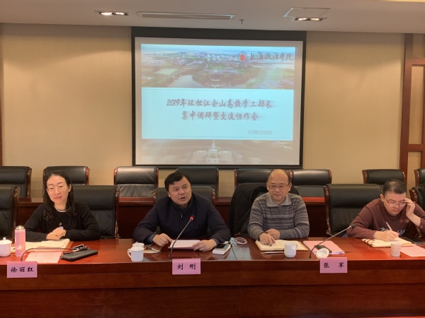 12月26日上午,2019年环松江佘山高校学工部长集中调研暨交流协作会在我校综合研究中心101会议室召开。上海外国语大学学工党委书记王一林,东华大学学生处处长廖丽金,上海对外经贸大学学生处处长许继亮和上海视觉艺术学院学生处处长王甜莅临会议。我校党委副书记刘刚,学工部部长张军,学工党委专职副书记朱和平,副部长柯心、徐丽红,学工部各中心主任、副主任出席会议。会议由张军主持。