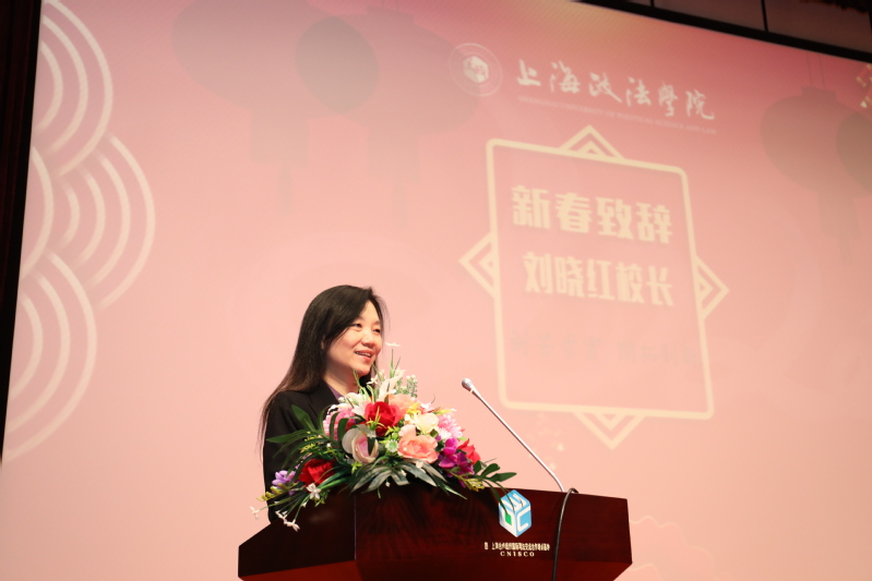 校党委副书记、校长刘晓红致新春贺词。刘晓红代表学校向出席团拜会领导、老师和同学致以新春的问候和祝福。刘晓红指出,在过去的一年里,学校在党建教育引领、服务地区国家战略、院系调整设置、学科专业建设、学术科研项目、高层次人才引进、学校合作办学、学生招生培养等方面均成果丰硕。这些成绩的取得,离不开每一位上政人的奋斗拼搏、辛勤付出和关心支持。她指出,2020年,上政将继续深耕“大学治理”,不断深化以两级管理为重点的治理架构改革,彰显砥砺前行、探索不止的“上政勇气”;要继续致力“社会治理”,打造办学特色,提升办学质量,展现为党育人、为国育才的“上政担当”;要继续服务“全球治理”,全面发挥中国-上合基地培训、智库、论坛三大功能,贡献具有世界眼光、中国气派的“上政智慧”。
