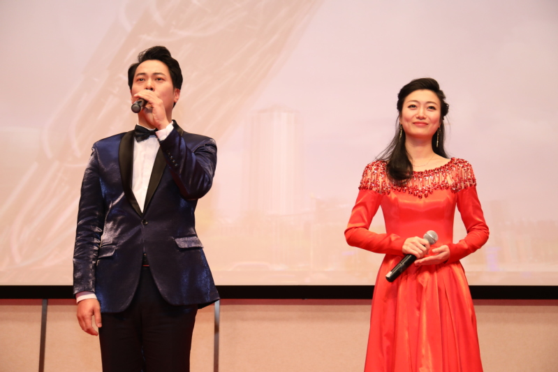 学校工会郭佳眉和陈成两位老师深情演唱歌曲《新的天地》