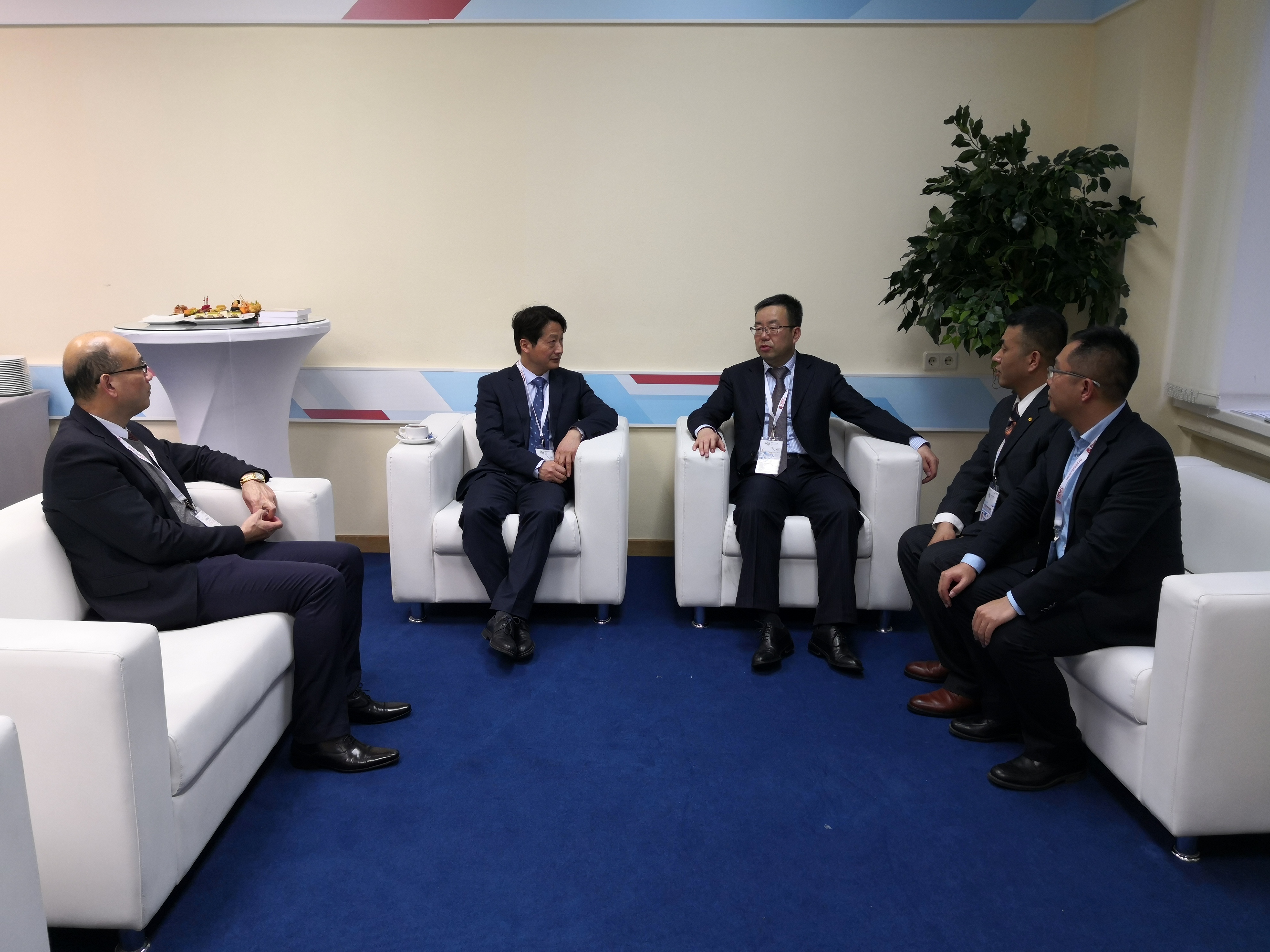 代表团一行在“盖达尔论坛”现场,拜访了中国驻俄罗斯大使馆教育处一秘梅汉成博士。姜思源将我校与俄罗斯总统国民经济与行政管理学院联合主办以“欧亚新地缘政治格局:中国‘一带一路’倡议与俄罗斯‘欧亚经济联盟’对接”为主题的分论坛进行了介绍,其中我校专家发言得到了各国参会代表的高度认可和广泛赞同。梅汉成对我校主办论坛“走出去”表示高度赞同,希望我校充分利用中国-上海合作组织国际司法交流合作基地的平台,加强教育国际合作,推动教育“走出去”,更好的服务国家战略。