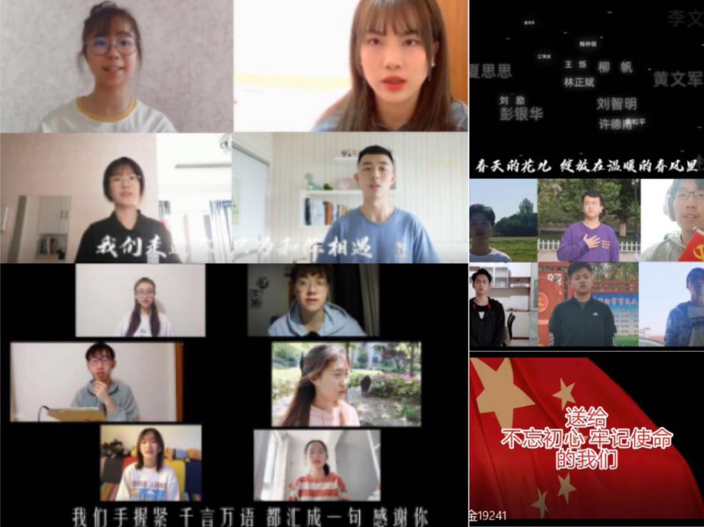 经金18242团支部合唱《我们在一起》,向奋战在抗疫一线的医护人员致敬;工管19261团支部合唱《想见你,感谢你》,以熟悉的旋律和改编充满正能量的歌词,向抗疫一线工作者表达崇高的敬意;国贸18222团支部合唱《你的答案》,抒发不惧黑暗、打破恐惧、勇往直前的追求;财管1741团支部合唱《我和我的祖国》,用温暖而富有力量的歌声,唱响对祖国最深沉的爱……