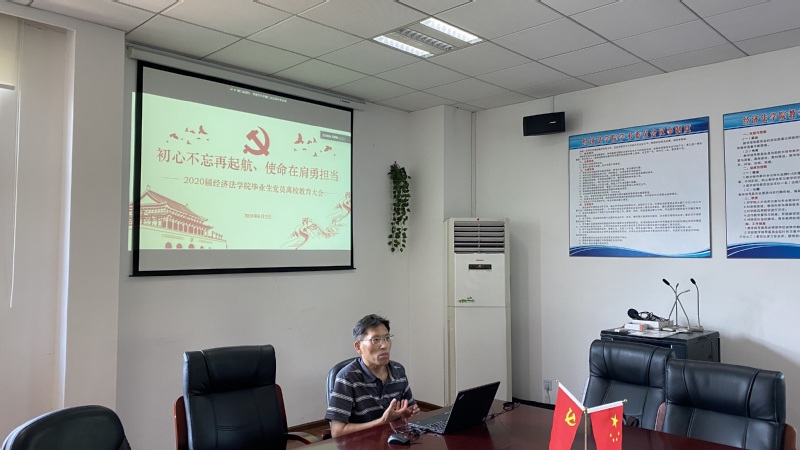 在毕业生党员离校前的最后一堂党课上,经济法学院党总支书记郭斌希望大家坚定对党的忠诚信仰,不忘初心、牢记使命;奋斗进取,找寻出自己踏入社会后的立身之本;拒绝固化,积极求变,善于自我调整;充分发挥想象力,抓住发展机遇,做堪当民族复兴重任的时代青年。