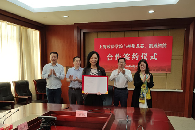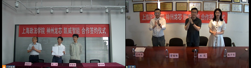 刘晓红与陈义共同签署了《捐赠及合作协议书》,杨华与张凌共同签署了《战略合作协议书》。根据两份协议,双方将在合作教学、国际论坛、智库研究、布局人工智能领域的国际化市场、人工智能法学研究等方面开展多项合作。神州龙芯将捐赠100万元人民币,支持我校筹建教育发展基金会。