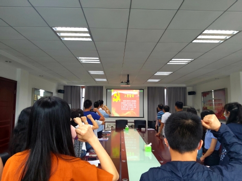在支部书记的带领下,党员们重温了入党誓词,学习了《习近平关于“不忘初心、牢记使命”重要论述摘编》中的部分内容,回顾了中国共产党历次代表大会的历史背景、重大决策和主要成就。通过观看影片《开天辟地新中国,国旗国歌诞生背后的故事》《探寻井冈山博物馆,见证中国革命最初的星星之火》,党员们对于党史、新中国史有了进一步了解,对于一代又一代中国共产党人前仆后继、艰苦奋斗的光辉历程有了更深刻的体会。