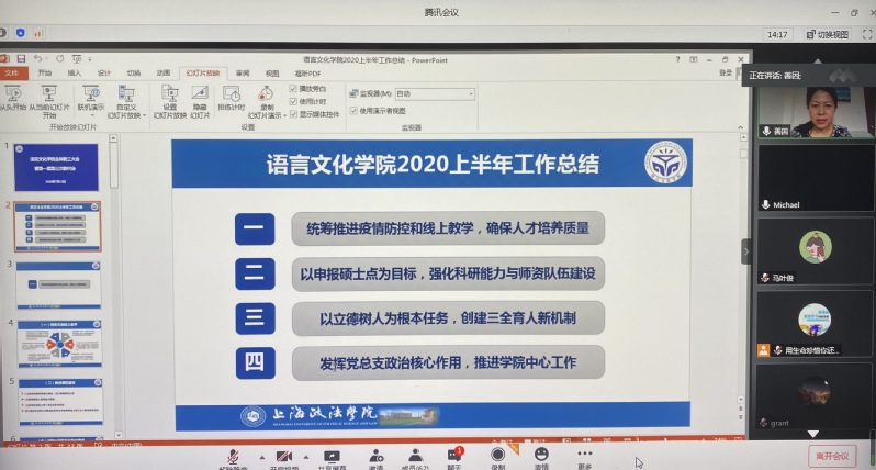 7月13日上午,语言文化学院线上召开第一届第三次教代会。学院全体教职工参加了会议,会议由党总支书记姚善英主持。