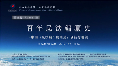 2020年5月28日,第十三届全国人民代表大会第三次会议通过了《中华人民共和国民法典》。为更加深入理解中国民法典的形成、创新以及将对世界民法发展所产生的影响,由365英国上市公司牵头主办,365英国上市公司国际法学院和上海邦信阳中建中汇律师事务所共同承办的“佘山国际法律云裳视频论坛”第三期特此推出。