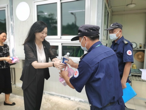 8月的上海高温不减,酷暑难耐。8月10日上午,党委书记夏小和,党委副书记、校长刘晓红,党委常委、副校长胡继灵深入一线,了解暑期校园安全及后勤保障工作情况,亲切慰问坚守工作岗位的一线工作人员,为他们送上清凉和关怀。