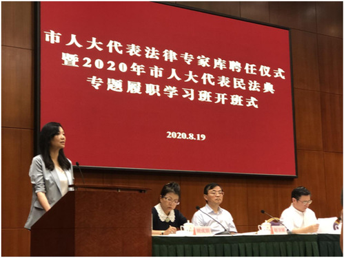 8月19日上午,上海市人大举办“市人大代表法律专家库聘任仪式暨第一期民法典专题履职学习班开班式”。在聘任仪式上,市人大秘书长宣布:29名法律专家当选为市人大法律专家库成员。我校有2名教师入选,分别是刘晓红教授和赵俊副教授,刘晓红校长还代表受聘的29名代表在聘任仪式上发表获聘感言。