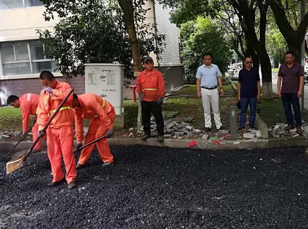 爱岗敬业,扎实推进。今年暑假期间天气炎热,持续高温,给维修项目的施工管理带来较大困难。为了确保施工安全,后勤保障处强化了项目的全过程监管,要求全体人员发扬“特别能吃苦、特别能战斗、特别能奉献”的精神,处领导率领后勤职工战高温、斗酷暑,克服困难抢工期、抓质量、保安全。在学校新大门沥青路面改造的沥青铺设阶段,许多同志从早上5点坚守到第二天凌晨;物业科全体同志为了盯牢盯紧工程进度,天天顶烈日、冒酷暑,不论工作日还是周末,每天坚持到工地检查工程进展,“五加二、白加黑”已经成为暑期维修工作的常态。在上政后勤人的共同努力下,目前,新大门沥青路面改造、求实楼及综合研究中心大厅顶面粉刷、求实楼办公室改造、第五食堂屋面防水等项目施工已经顺利结束,其他维修项目正在按进度计划扎实推进。