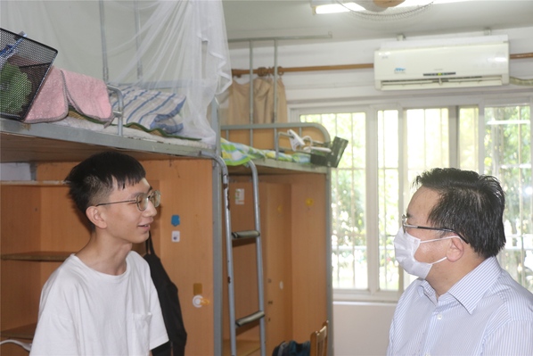 按照“错区域、错层次、错时、错峰”的返校原则,我校近日起组织学生分期分批有序返校。8月31日下午,校党委书记夏小和,校党委副书记刘刚带领相关部门负责同志来到学生报到点、检测点、学生宿舍等重点区域,亲切慰问返校学生和坚守一线岗位的教职员工。