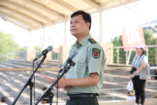 刘刚在讲话中代表学校党政向参训学生表示亲切的问候,向承训部队和全体教官致以崇高的敬意,向保障军训的教职工和导生表示衷心的感谢。刘刚指出,希望全体参训学生在军训中立报国之志,用学到的知识报效祖国、服务人民;在军训中磨意志之坚,通过军训找回奋进的自我,迈向胜利的前方;在军训中聚团队之力,更多地信任队友,团结一条心。