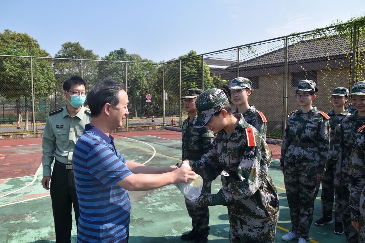 最后,学院领导为全体军训学生、教官、带教教师以及军训导生送来了慰问品,鼓励全体同学在军训中练就自我,创造出人生美好记忆。(魏应超撰稿 钱美琪摄影)