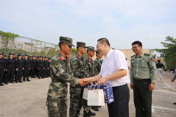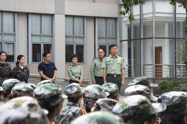 随后,校领导分别前往各连训练场地,察看了学生训练情况,与承训教官进行了亲切交谈,对参训学生表现出的良好精神风貌给予了充分肯定。校领导勉励同学们克服困难,迎难而上,在军训中磨砺意志与品质,增强纪律观念和团队协作意识,圆满完成各项训练任务。(程丹撰稿 晏晓东摄影)