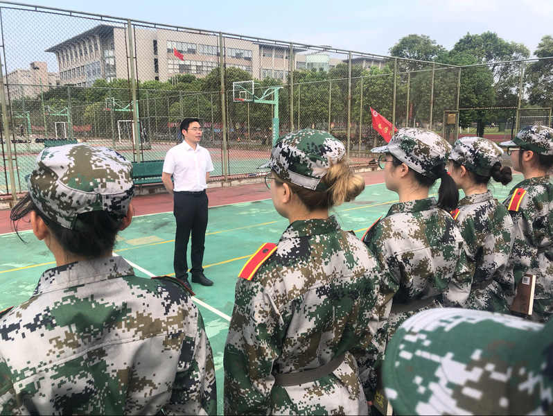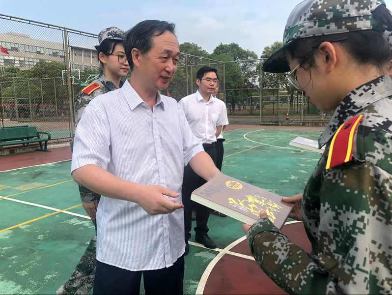 9月10日上午,人工智能法学院党总支书记欧阳为民、院长杨华、党总支副书记张顺芳、副院长黄芹华一行来到训练场地,慰问正在军训的全体学生。