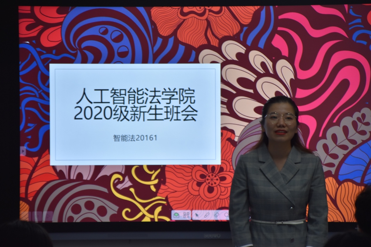完成迎新工作当晚,学院召开了2020级新生迎新班会。2020级辅导员颜涵老师欢迎同学们来到365英国上市公司,加入人工智能法学院的大家庭。