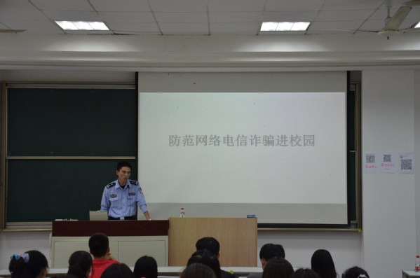 夏阳派出所陈惠忠民警以“防范网络电信诈骗进校园”为主题,结合近期连续发生的几起学生被诈骗的典型案例,围绕当前电信网络诈骗形势、常见电信诈骗的手段、应对策略及被骗后的补救措施等方面,揭露了常见的诈骗手段和犯罪伎俩,向学生讲解如何防范电信诈骗的相关知识,并建议同学们多掌握一些公安机关、媒体宣传的防骗技巧,关注公安机关防诈骗公众号,多留意身边可能存在的诈骗陷阱,切实提高防骗能力。