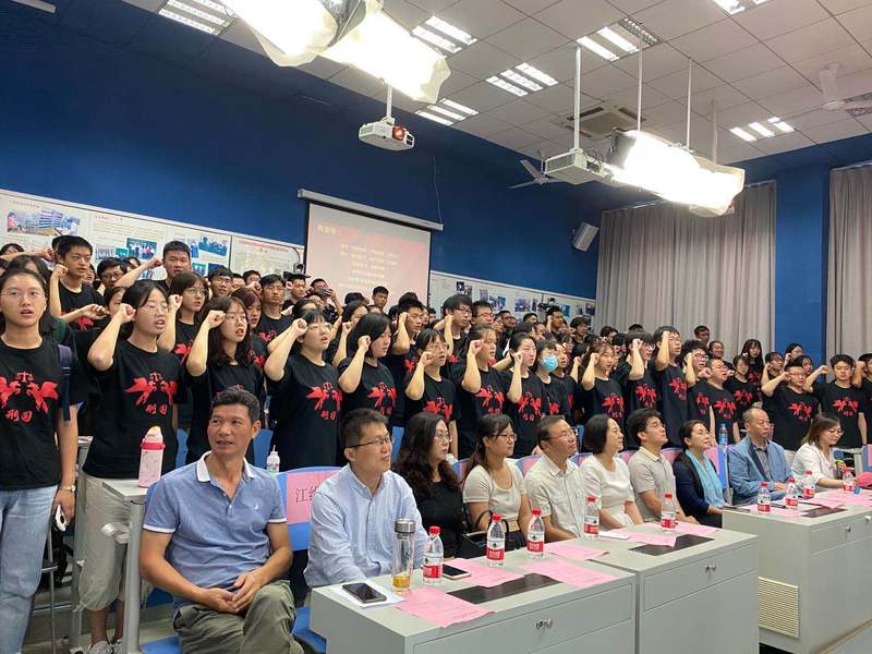 最后,胡冠时向2020级新生代表授旗,希望新同学不忘初心,牢记使命,为刑司的院旗增光添彩。新同学们在刑事司法学院学生会主席钱孜恩的带领下集体宣誓,表达了他们秉承传统,刻苦学习,奋勇拼搏的决心。