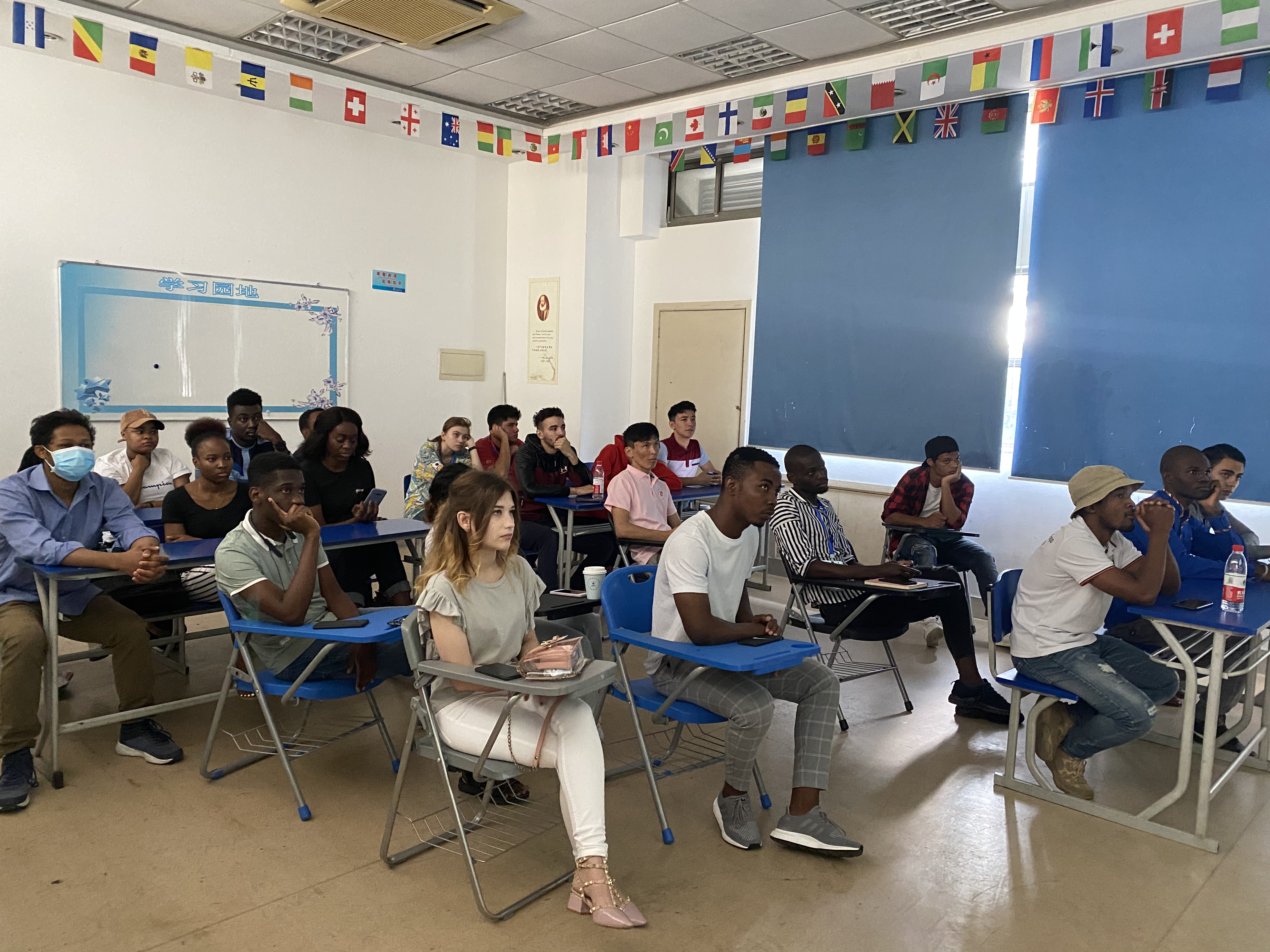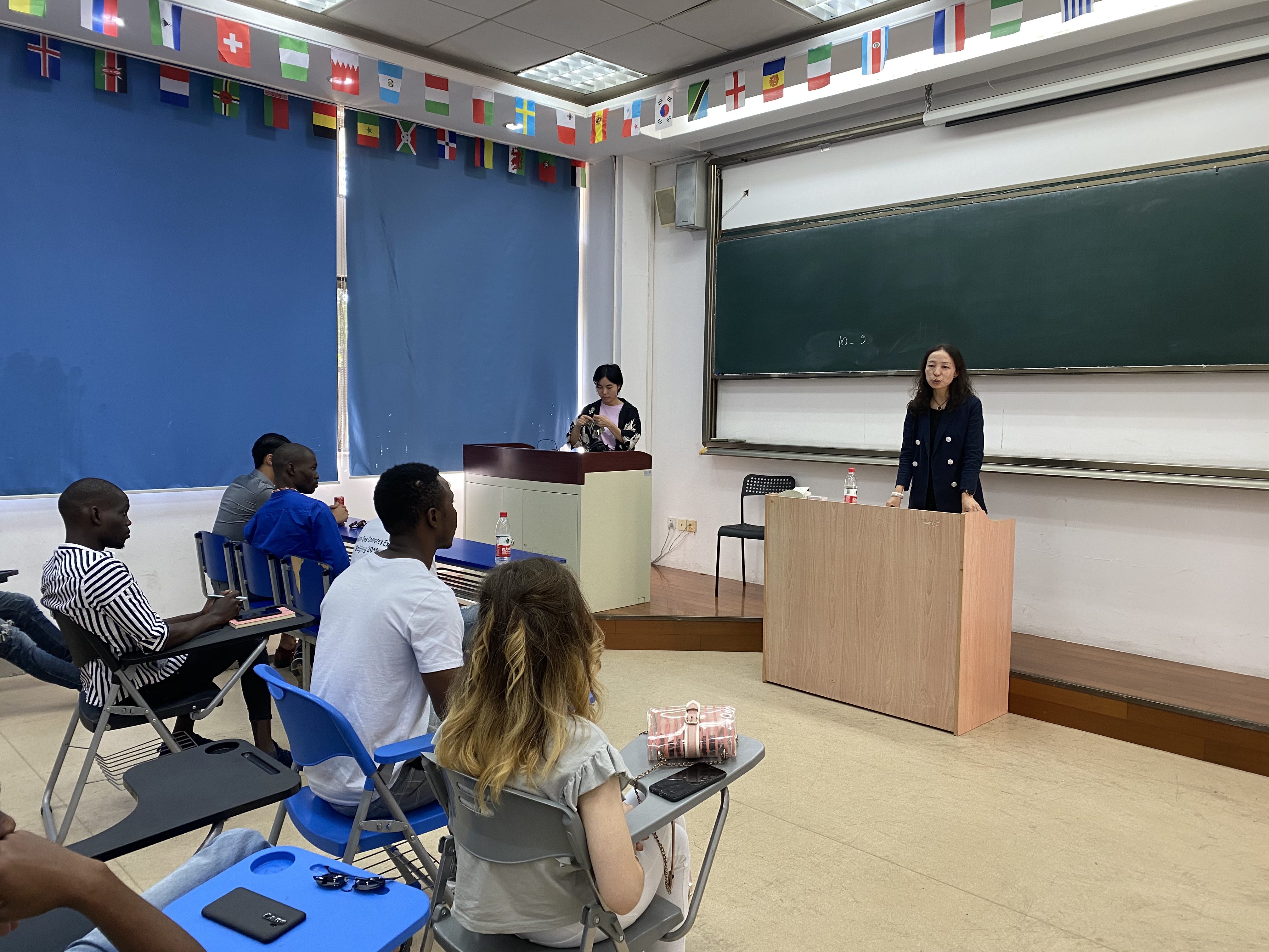 余宜荣首先向新生介绍了学校的概况以及国际交流学院(留学生办公室)的人员组成和职责分工。随后,分别从专业学习、校园生活、防疫要求等方面进行了详细的讲解,并着重对新生进行了安全教育,组织观看了预防网络诈骗的视频,提醒安全要从小事做起,防微杜渐,让安全防范意识渗透到生活的点点滴滴。