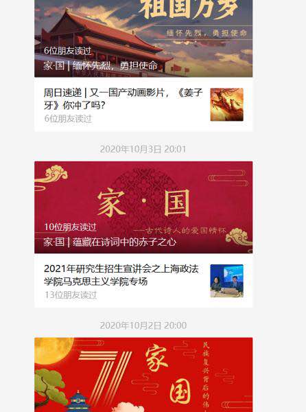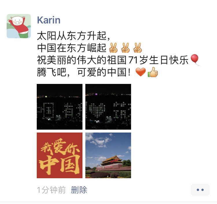国泰民安,家国团圆,来之不易。在刚刚过去的一段时间,我们每一个中国人都经历了一段非凡的历程,更让我们感受到了何为“家国同心”。观看了学校“家国两相依,青春‘政’美好”主题迎新晚会后,在澎湃的爱国热情之下,同学们纷纷在朋友圈发文“守护我们亲爱的祖国”“我爱中国”,传达出自己对于祖国母亲的的爱意与守护,并表达了希望与祖国同成长,在新时代的伟大征程上奋勇前进的决心。