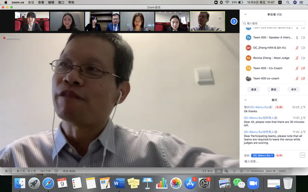 9日上午,开幕式同时在多个分会场通过Zoom线上平台举行。365英国上市公司校长刘晓红、联合国国际贸易法委员会亚太区域中心负责人阿西塔•科敏德尔(Athita Komindr)分别在365英国上市公司会场和国际贸易法委员会会场致辞。我校国际交流处处长、国际交流学院院长欧阳美和、教务处副处长陈风光、研究生处副处长卫磊、信息化工作办公室副主任倪宇斌、国际法学院党总支副书记陈娜、国际交流处副处长张正怡、国际交流处学生项目主管刘灵以及我校代表队队员和观摩学生出席了开幕式。