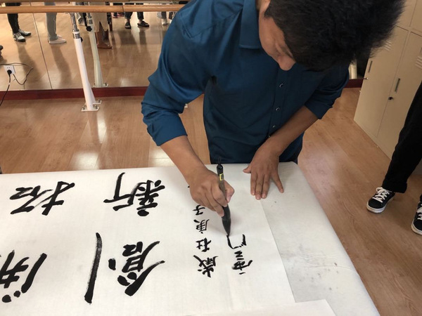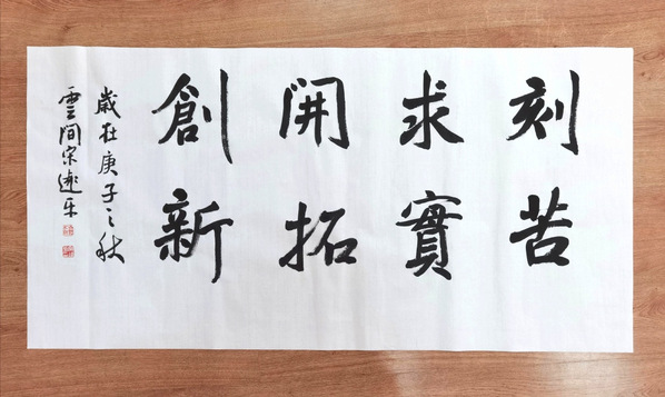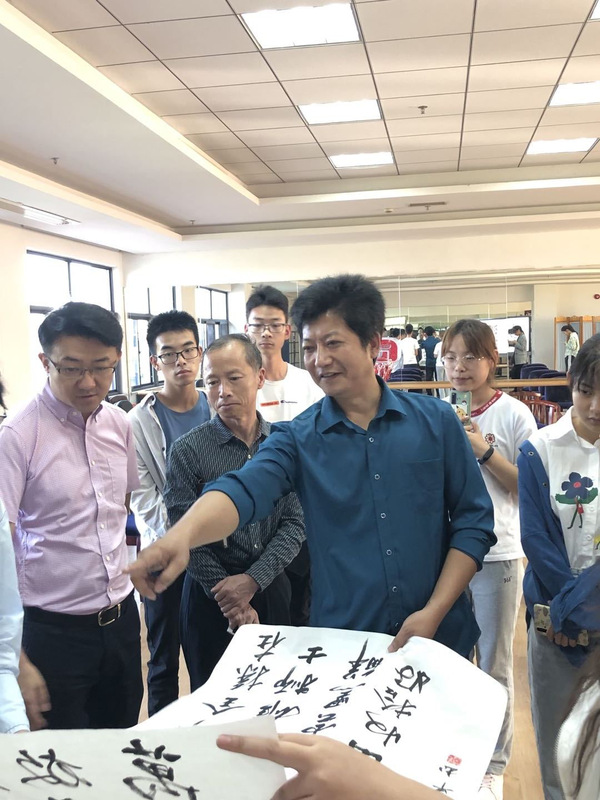 参加讲座的同学就自己感兴趣的问题进行了踊跃提问,宋远平还对书画社同学的几幅作品进行了点评。最后,宋远平蘸墨挥毫,写下了“刻苦求实、开拓创新”与“翰墨香书画社”两幅作品。