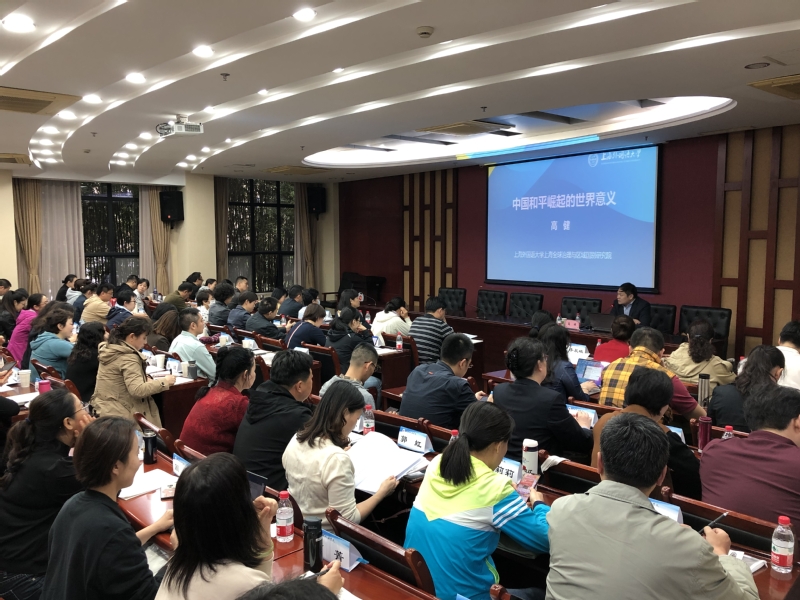 开班仪式上,陈玲就接下来的培训提出要求,希望学员们遵守培训班管理规定,积极参加培训,认真听讲,做好笔记,努力提高自身综合素质,圆满完成本期学习任务。开班仪式后,上海外国语大学高健教授为学员们作题为“中国和平崛起的世界意义”专题讲座。高健围绕中国的和平发展对世界局势的稳定,和谐世界的构建以及为国际社会提供一个全新的发展模式作了深刻的分析,全面阐述了中国和平崛起的路线与重要意义。学员们认真热情,对培训课程积极参与,并表示出对接下来课程的期待。