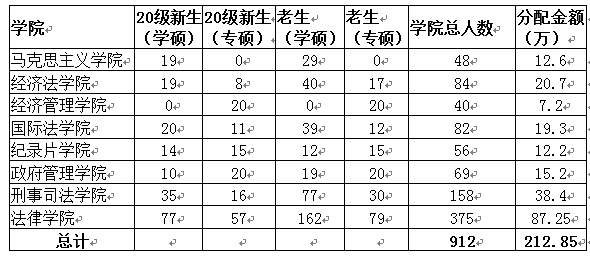 注:奖学金的名额不能在学硕和专硕之间调剂使用。如果出现专业班级内不能完成名额的情况,资金额度可在同一年级同一类别内调剂。