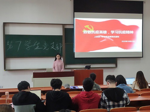 为进一步深化落实“四史”学习教育,贯彻习近平总书记在全国抗击新冠肺炎疫情表彰大会上的重要讲话精神,10月22日下午,上政第7学生党支部围绕“致敬抗疫英雄,学习抗疫精神”进行了主题学习,并到图书馆集体参观了“陈云精神风范专题展”。法律学院党总支书记文立月,上政第7学生党支部书记张露、副书记汤裕杰出席本次活动。