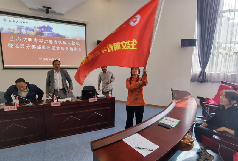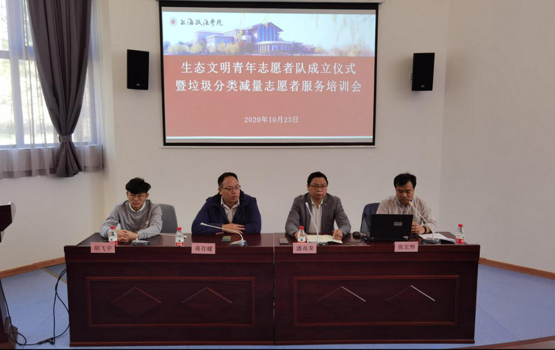 近日,我校在上合基地107会议室举办生态文明青年志愿者队成立仪式暨垃圾分类减量志愿服务培训。后勤保障处副处长潘高荣、校团委副书记蒋存耀出席会议。会议由后勤保障处挂职副处长张宏辉主持。