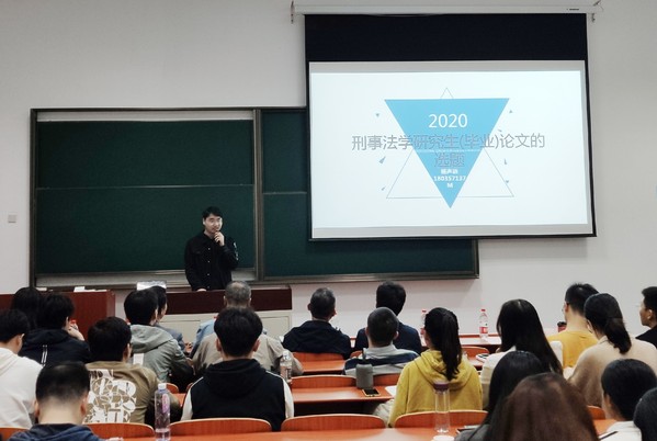 在与谈环节,6名研究生代表分别就毕业论文选题和论文写作心得发言。在第一单元“硕士毕业论文选题经验分享”中,2018级刑法学研究生杨声远、李芬静、肖知志结合自身的毕业论文选题经验,从如何选题、选题可能遇到的问题及解决方法等进行了深入交流。在第二单元“论文写作心得体会交流”中,2019级法硕研究生熊枫,2019级刑法学研究生李思佳、傅亮分享了研究生期间的学习方法、写作、投稿经验等学习研究体会。