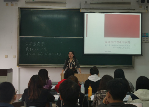 为进一步提高课堂教学质量,提升教师课堂教学能力,充分发挥优秀教师的示范作用,10月28日上午,政府管理学院举办了由时怡雯老师主讲的《家庭治疗理论与实务》公开示范课活动。学院谈谭副院长、石发勇教授、杨柳副教授、王聪博士等多名教师参加听课观摩。