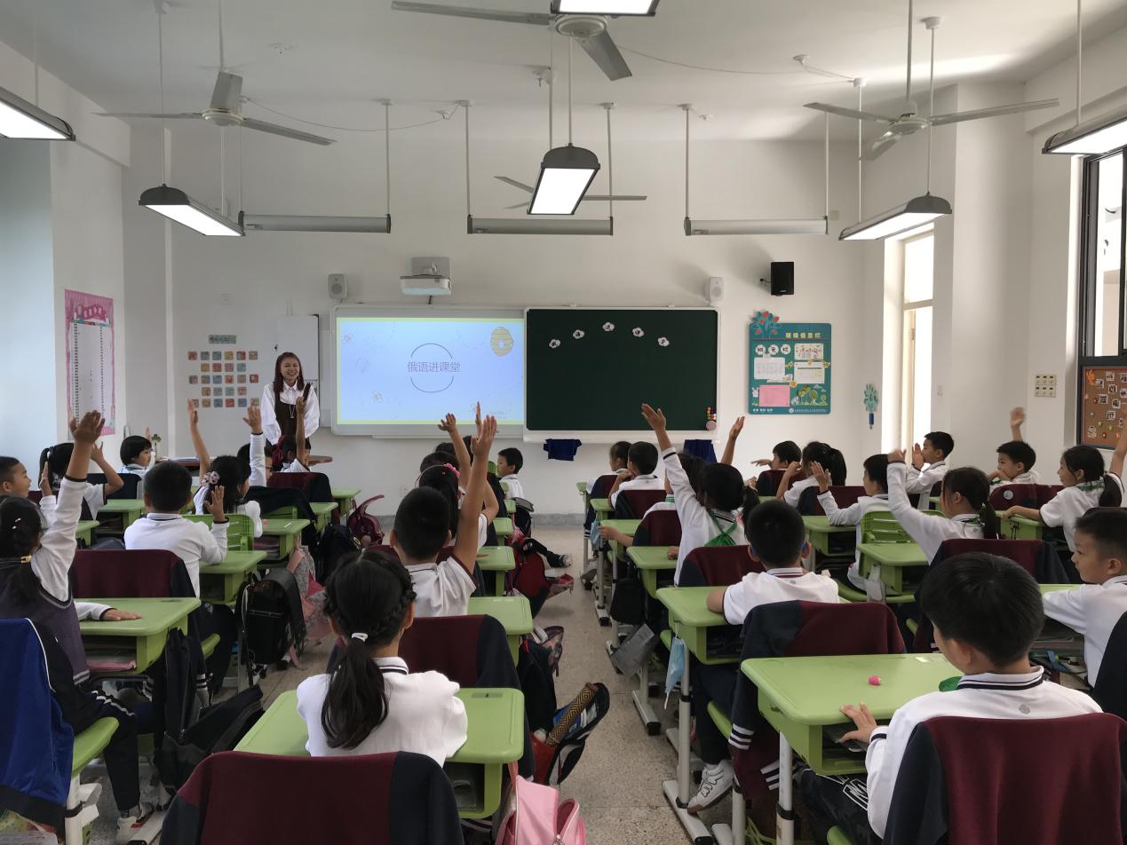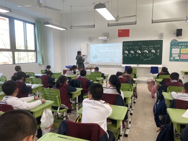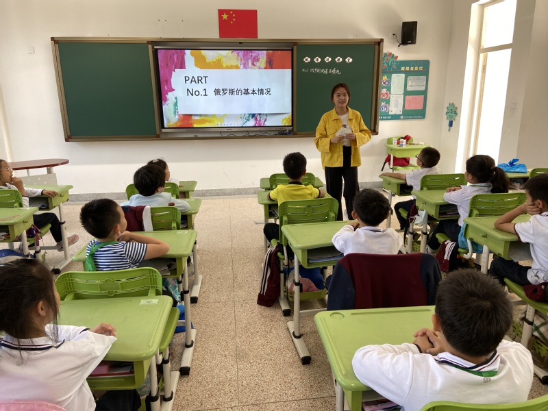“俄语进课堂”项目面向二三年级和六七年级的学生,学院组建了由10位俄语专业高年级学生担任课程教师的志愿者服务队。志愿者们每周两次来到学校教授基础俄语,教唱俄语字母歌、展示俄罗斯著名城市、讲述俄罗斯传统节日和习俗。志愿者们寓教于乐,孩子们乐在其中。俄语兴趣课为中小学生带来了全新的语言体验,从语言学习的字母、拼音、单词到说出基本会话用语的收获与欣喜,无不为孩子们的语言学习埋下了兴趣的种子,树立了学好语言服务国家建设的远大理想。