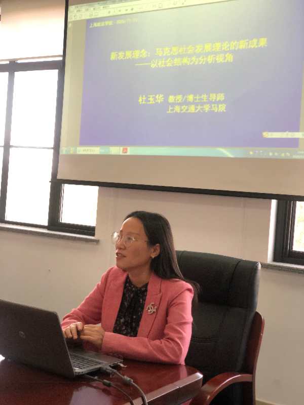 11月10日,中央马克思主义理论研究和建设工程专家、教育部重大项目首席专家;国务院学科评议组成员、教育部高校思想政治理论课教学指导委员会委员,上海市马克思主义研究会常务理事、副秘书长、上海市马克思主义研究会学科建设专业委员会秘书长,上海交通大学杜玉华教授来我校马克思主义学院作讲座。讲座由马克思主义学院党总支书记徐俊峰主持,三十余名师生现场聆听了讲座。