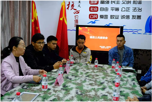 11月10日中午,学工部、人民武装部在社区28号楼“退役军人之家”召开2020年退役大学生座谈会。学工部、武装部副部长徐丽出席座谈会。2019年退役士兵代表、2020年退役士兵参加座谈会。座谈会由武装部干事叶尔江主持。